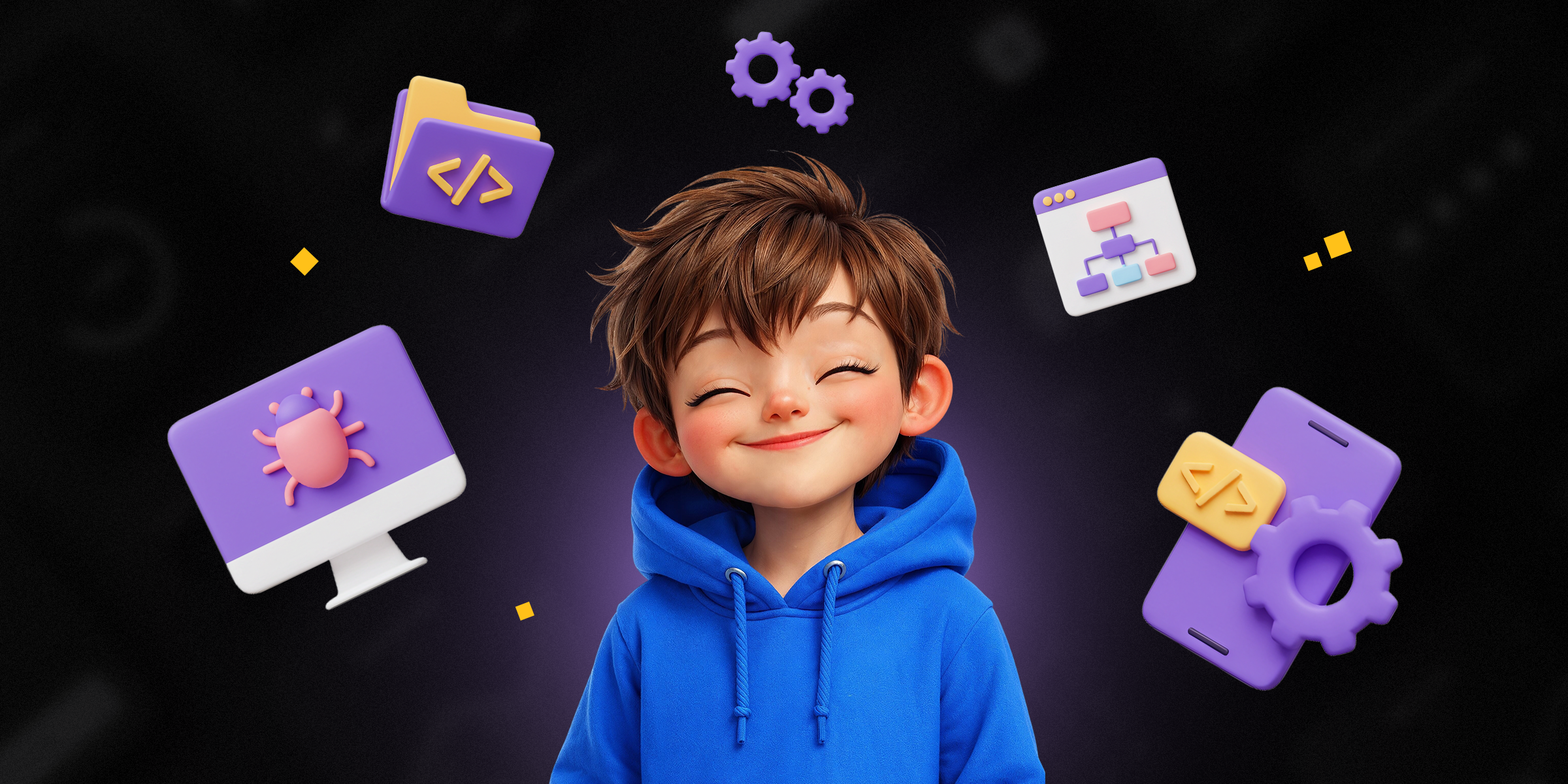 Ребёнок сам соберёт настоящий сайт: структура, дизайн, код. Научится использовать AI для генерации текстов и ускорения работы. Тема на выбор: любимая игра, блог о себе или страница для события. На выходе получается готовый проект в портфолио и навыки, которые пригодятся в любой профессии.